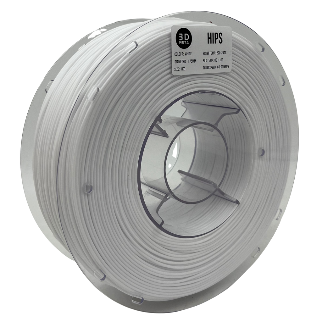3D META's HIPS 3D printing filament is engineered with high-quality High Impact Polystyrene (HIPS), offering excellent strength, durability, and versatility for a wide range of printing applications. Known for its smooth surface finish and exceptional printability, HIPS 3D printing filament is often used as both a standalone material and a dissolvable support material for complex prints, especially in conjunction with ABS filaments. This filament excels in producing high-quality, detailed prints with superior dimensional stability and minimal warping, making it an excellent choice for hobbyists, engineers, and professional designers alike.