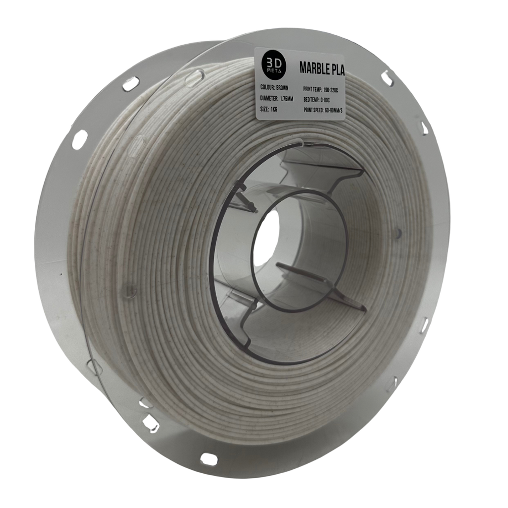 3D META’s 3D printing marble filament offers a unique aesthetic that replicates the look and feel of real marble, adding an elegant touch to your 3D printed projects. Made from high-quality polylactic acid (PLA) combined with special additives, this filament produces a stunning stone-like appearance with subtle, natural-looking textures and colour variations. Whether you’re creating decorative items, architectural models, or artistic pieces, our 3D printing marble filament provides a premium finish that stands out.